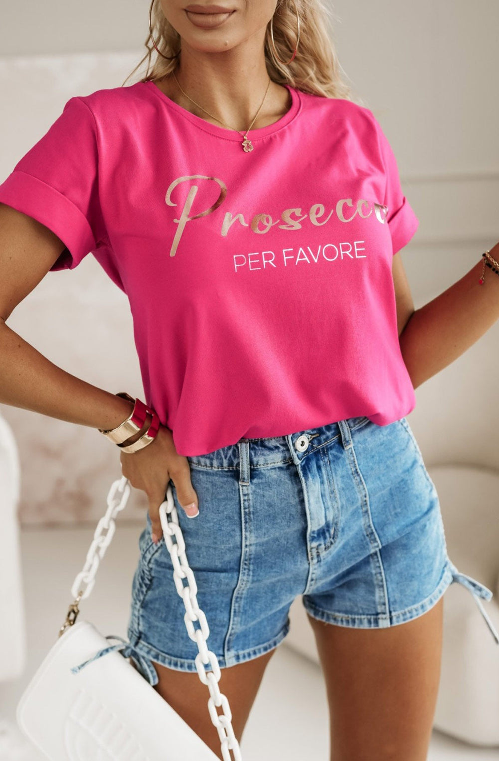 'Prosecco Per Favore' Graphic Printed T-Shirt Top-Hot Pink
