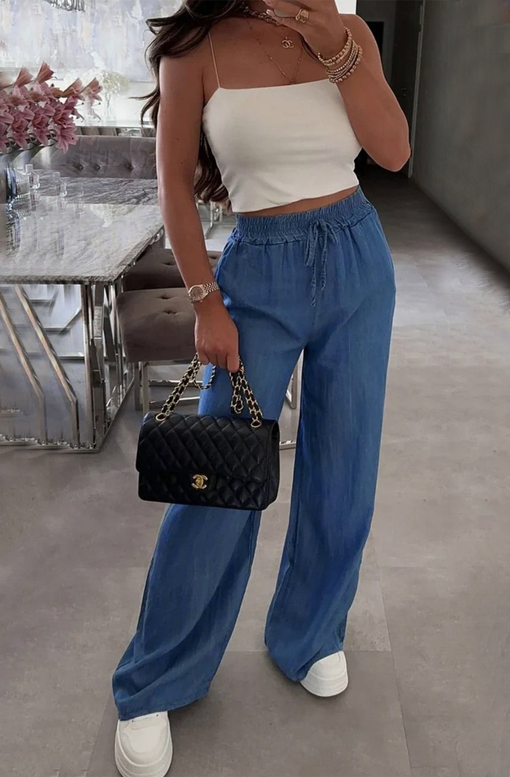 Zarina Wide Leg Pocket Detail Trousers-Blue