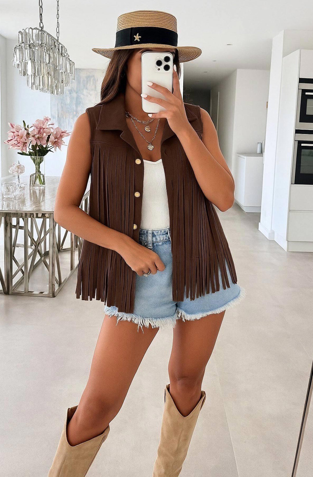 Tess Sleeveless Longline Blazer Vest-Mocha