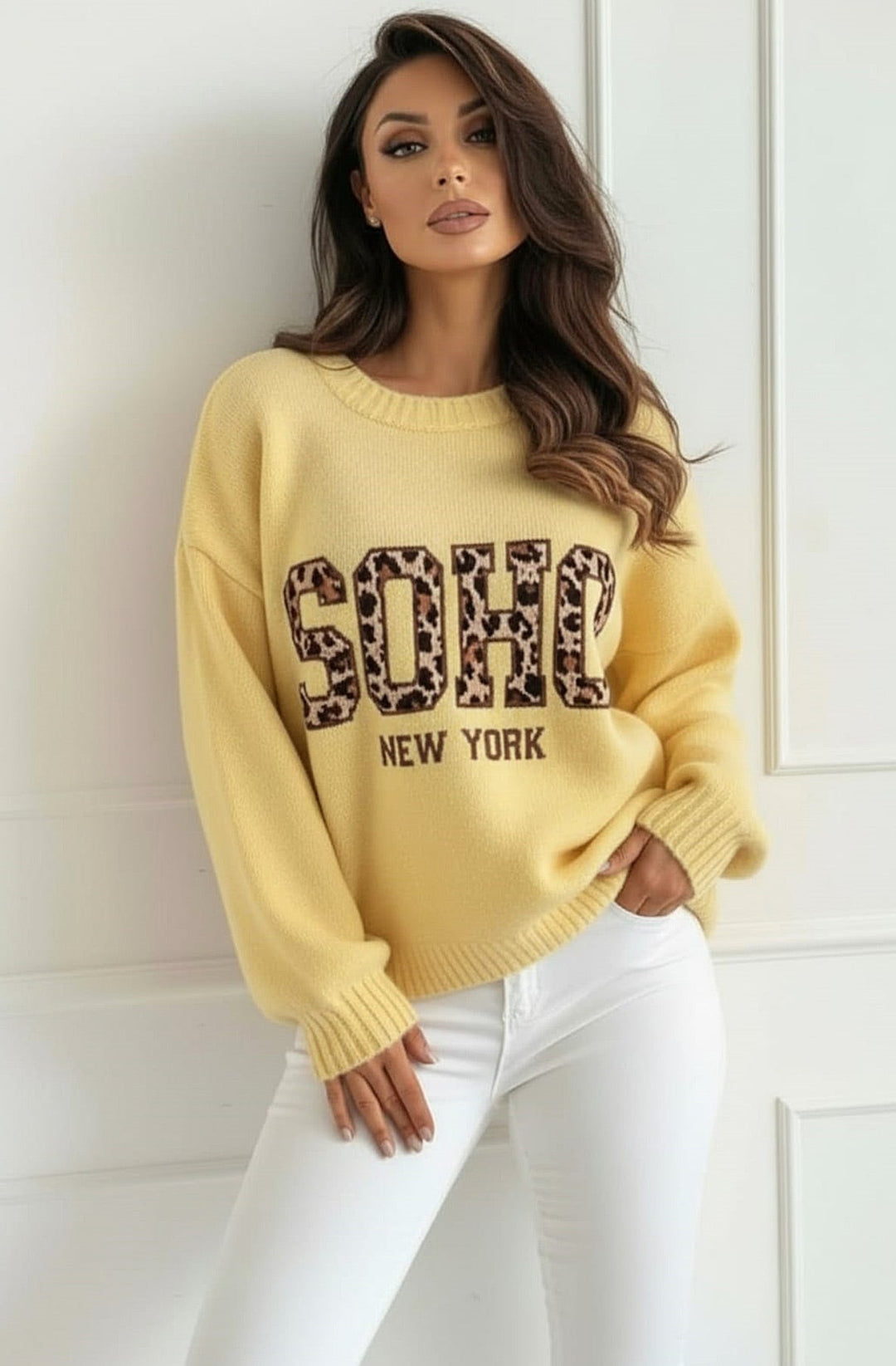 Nixi “Soho NY” Animal Graphic Knit Sweater Jumper-Yellow