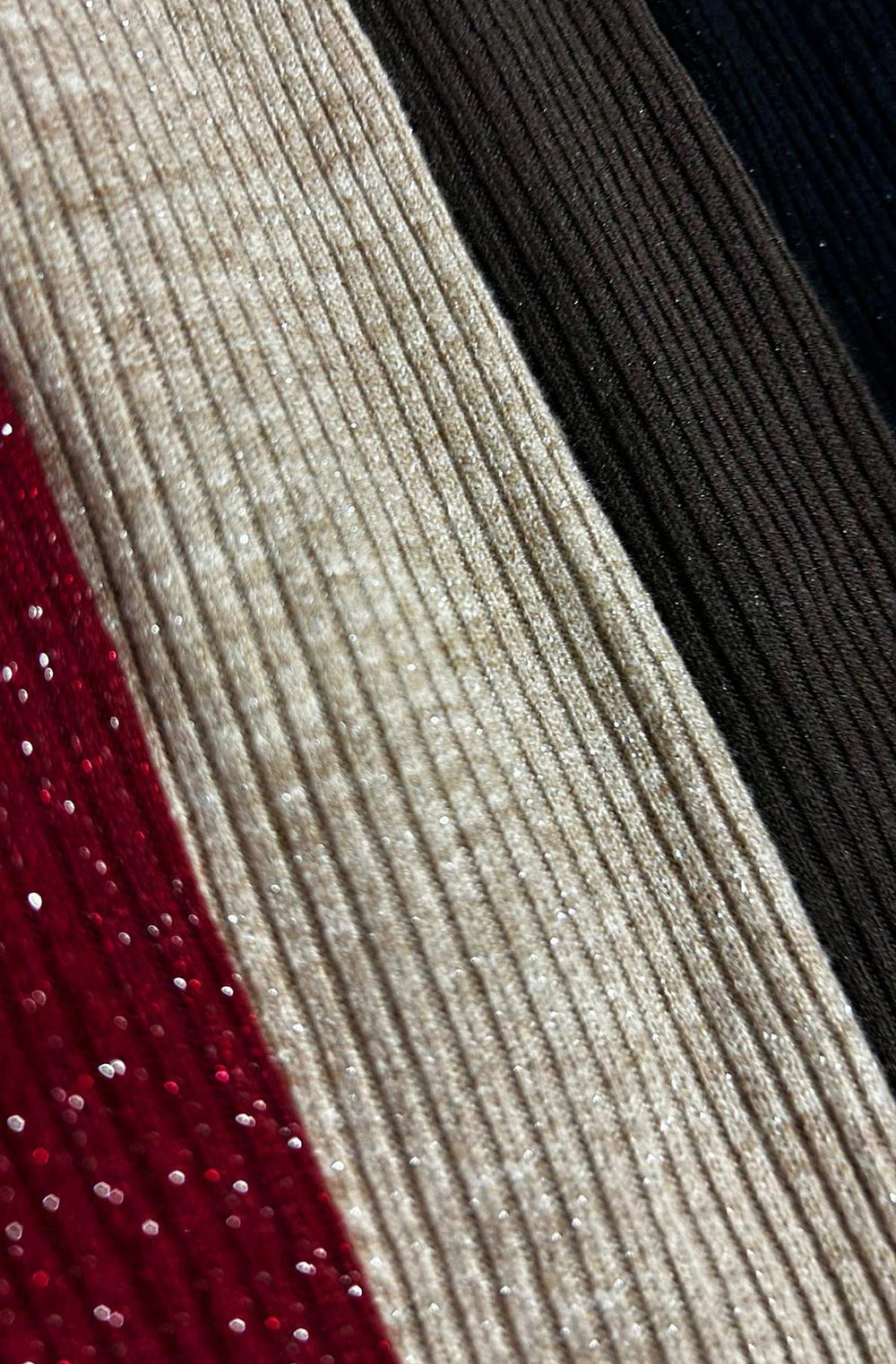 Dalia Shimmer Ribbed Light Knitted Sweater Jumper Top-Brown