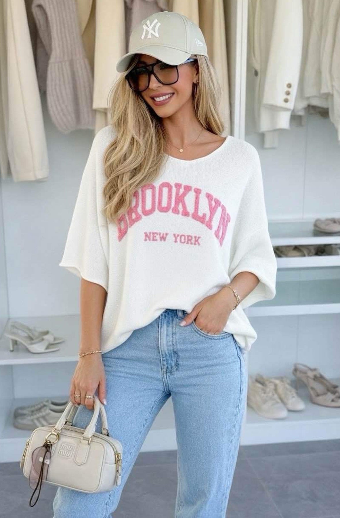 Featuring a bold textured “BROOKLYN” applique across the front with “NEW YORK” printed detail below, it delivers that standout city-girl aesthetic 💖 The relaxed oversized silhouette drapes beautifully, while the soft boat-style / wide crew neckline enhances the laid-back feel.