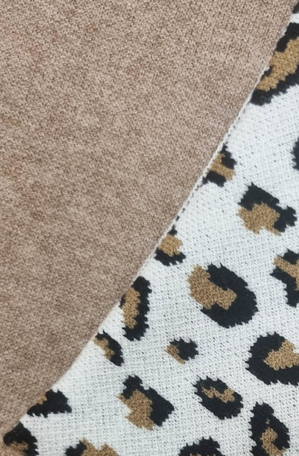 This warm, earthy tone paired with fierce leopard-print ruffle sleeves is the ultimate mix of cosy meets bold. A statement knit that’s soft, stylish, and oh-so easy to wear.