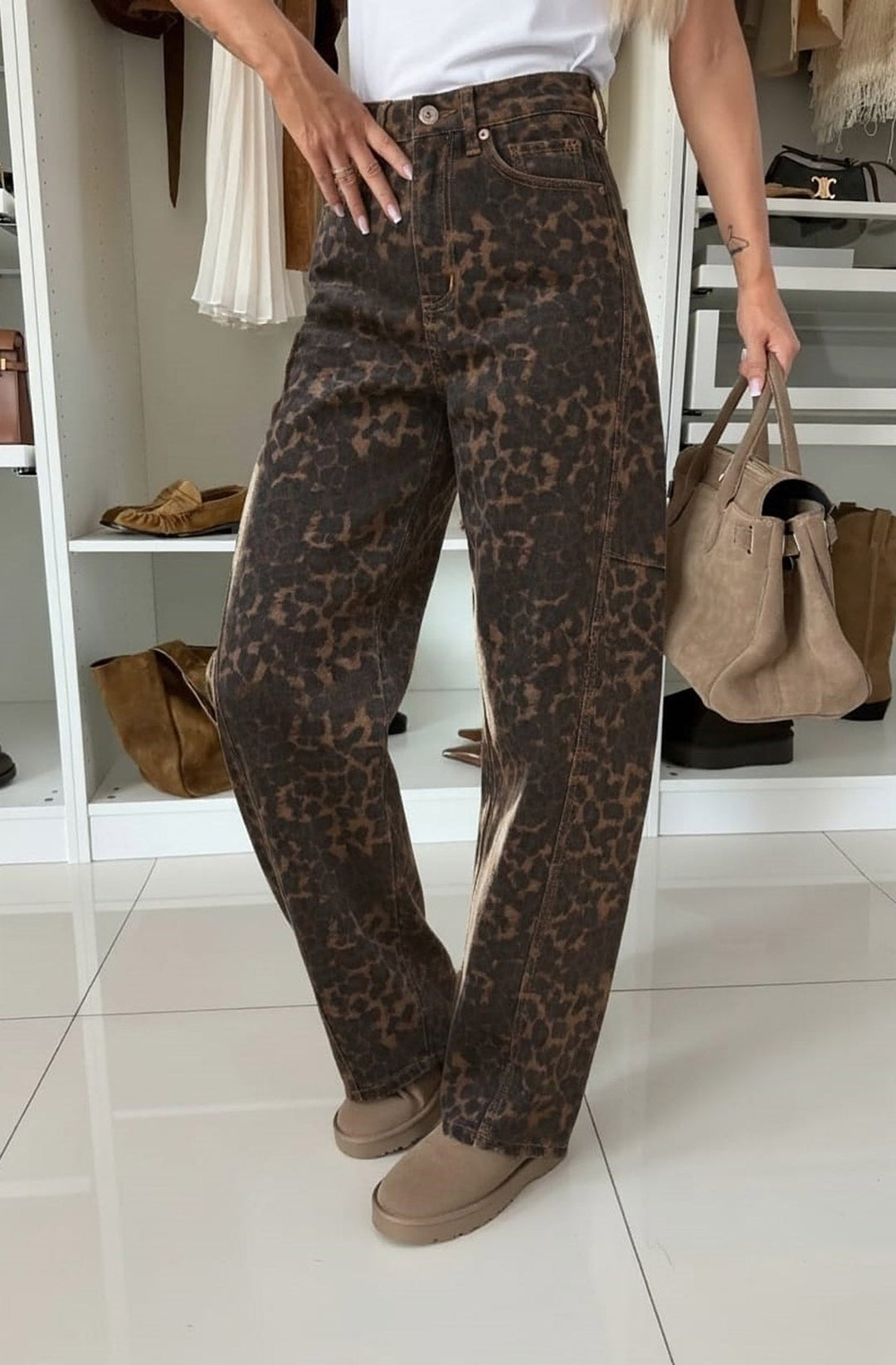 Rocco Leopard High Waisted Balloon Denim Jeans-Brown
