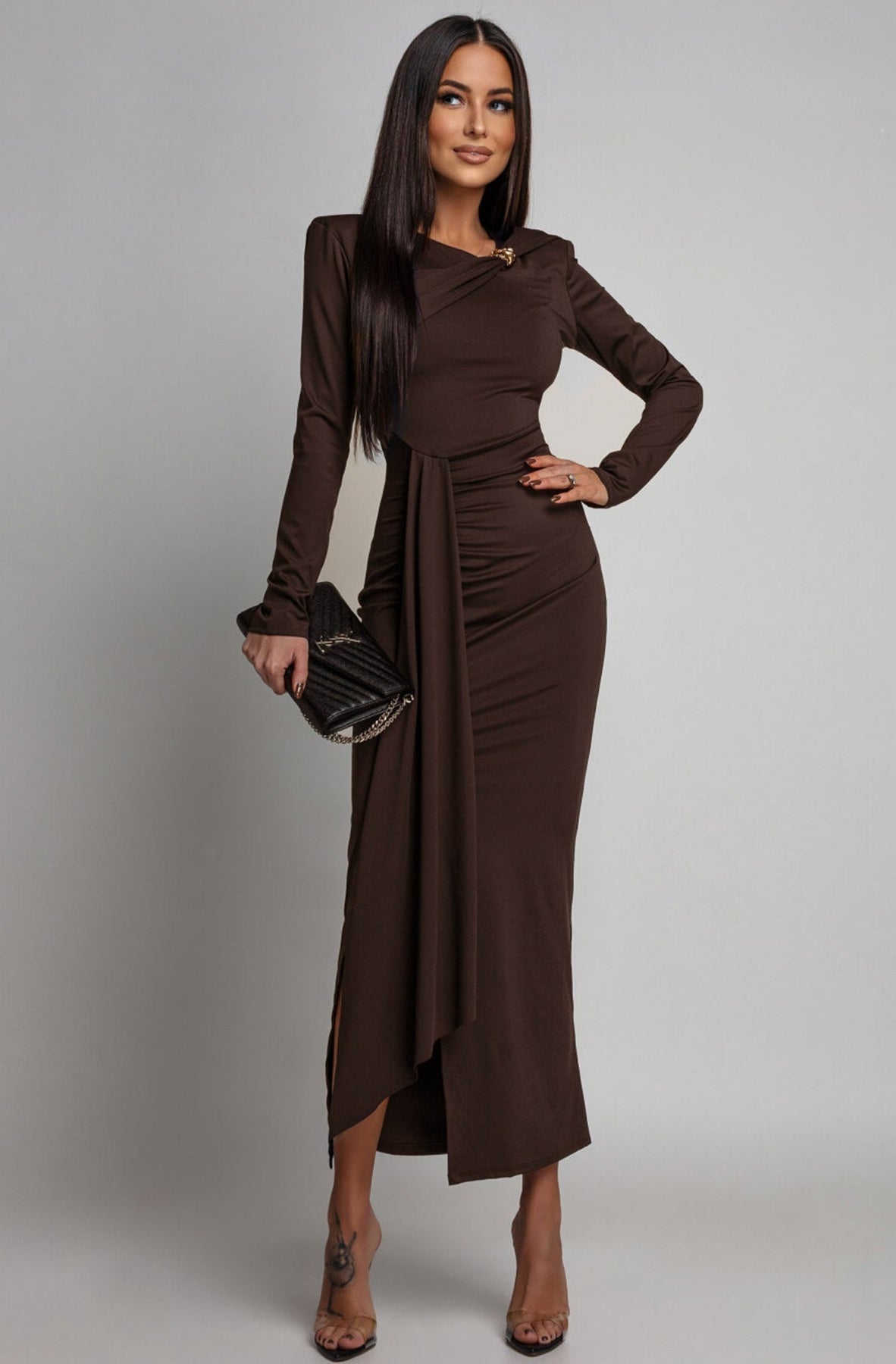 A front-leg split adds a touch of drama 🔥, while the long sleeves balance the look with sleek, refined coverage. Perfect for evening dinners, parties, celebrations, or any moment you want to look refined yet comfortable.