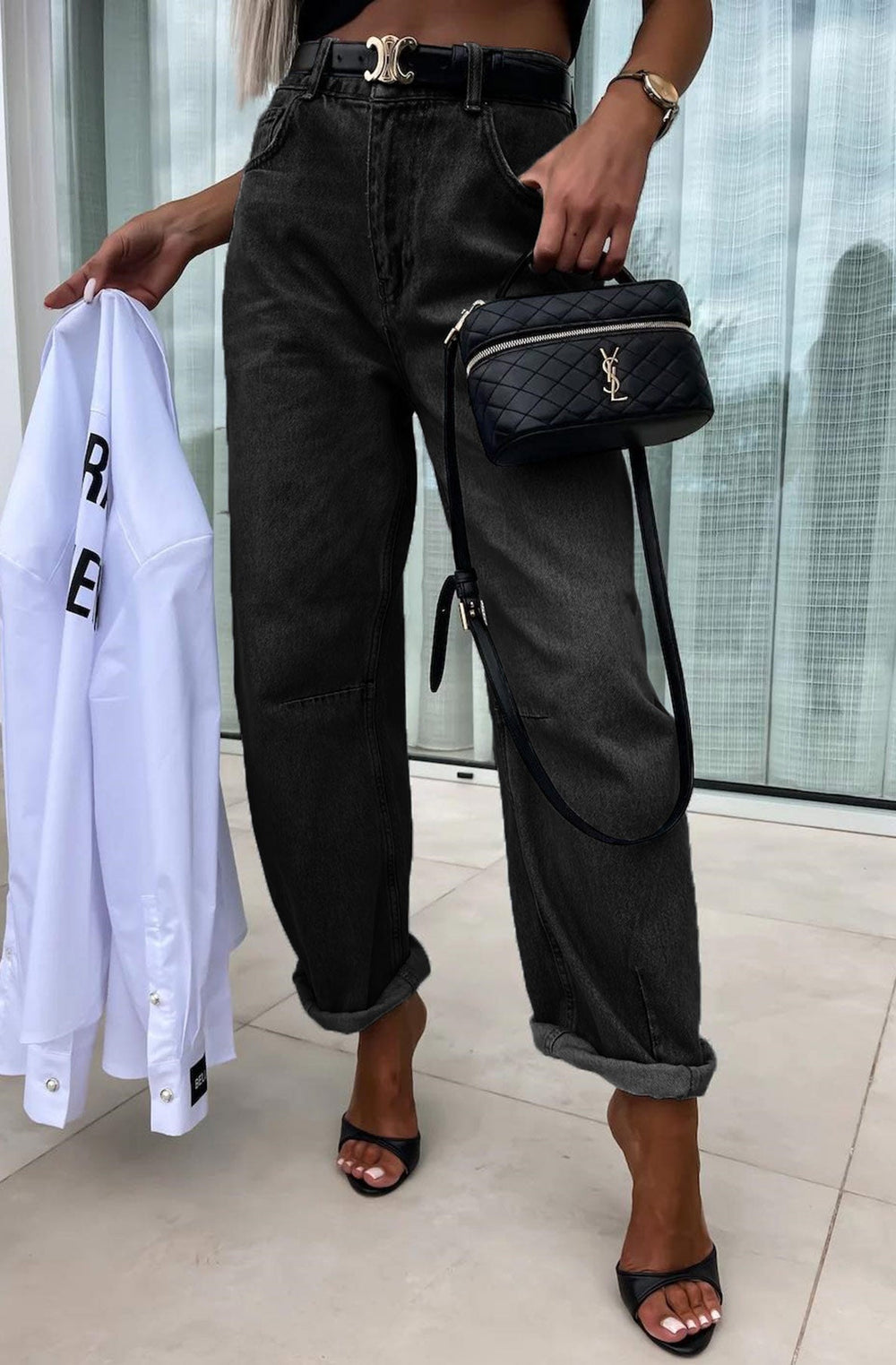 Elise Barrel High Mom Fit Denim Jeans-Black