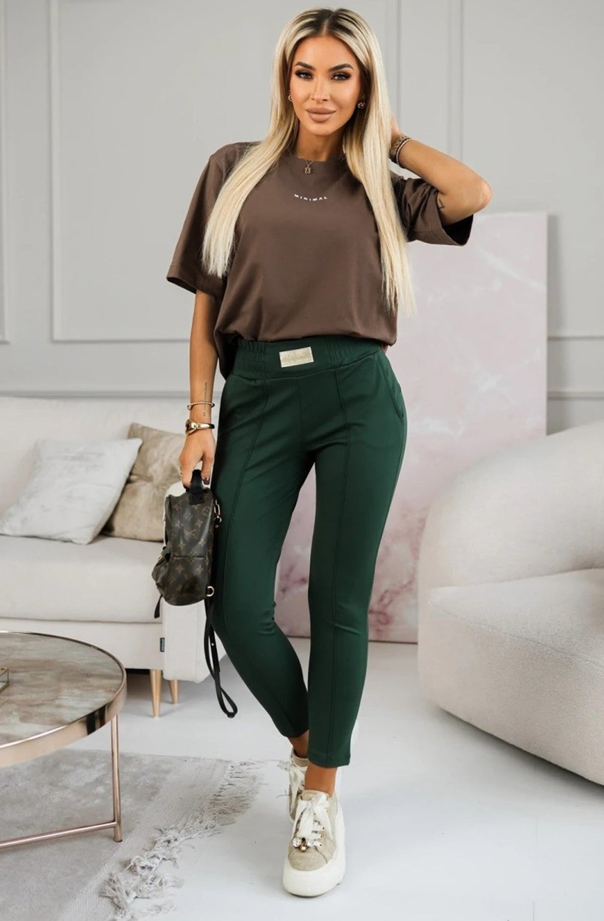 The subtle “Minimal” graphic print adds a modern touch without overwhelming the look—just the right amount of edge for your everyday outfit.